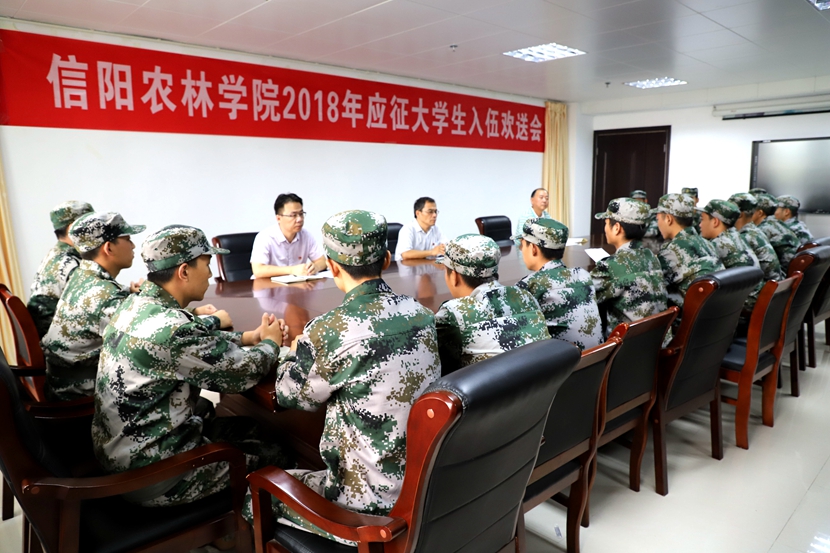 党委武装部部长裴立新宣读了beat365在线平台官网2018年应征入伍大学生名单。园艺学院王超同学代表入伍大学生发言,他感谢学校的培养与信任,定会牢记母校的嘱托,到部队后刻苦锻炼,献身国防,为母校争光添彩,不辜负学校各级领导和老师的期望。