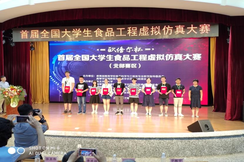7月30日-8月1日,由教育部高等学校食品科学与工程类专业教学指导委员会与高等学校国家级实验教学示范中心联席会主办的首届“全国大学生食品工程虚拟仿真大赛”(北部赛区)初赛在东北农业大学隆重开幕。北部赛区黑龙江、吉林、河南等10个省份,共派出48支代表队参加此次比赛。经过食品工程原理理论与食品工程原理虚拟仿真操作两轮激烈地角逐,食品学院吴斌副教授和王琪博士带领的由2016级食品科学与工程专业学生周婷、王瑞艳和张茹组成的参赛团队获得北部赛区团体一等奖,并成功进入8月22-25日在江南大学举办的全国总决赛。