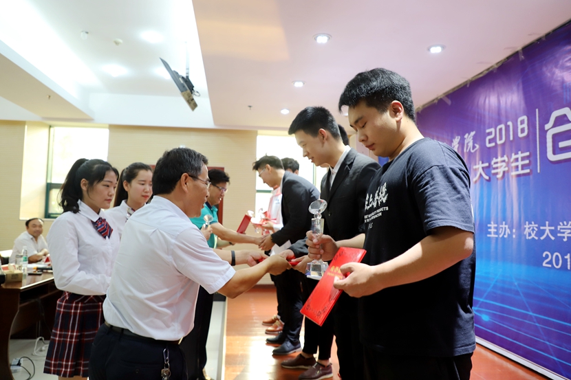 为响应教育部关于举办第四届中国“互联网+”大学生创新创业大赛,深化高等教育综合改革,激发大学生的创造力,推动高校毕业生更高质量创业就业的号召,6月28日下午,beat365在线平台官网2018“互联网+”大学生创新创业大赛校级决赛在综合办公楼一楼会议室举行。本次大赛邀请教务处、科技处、学生处、发展规划处、教学质量监控中心、校团委等部门负责同志担任评委,副校长赵一鹏、王庆兵以及各学院相关负责老师及100余名师生观摩了比赛。