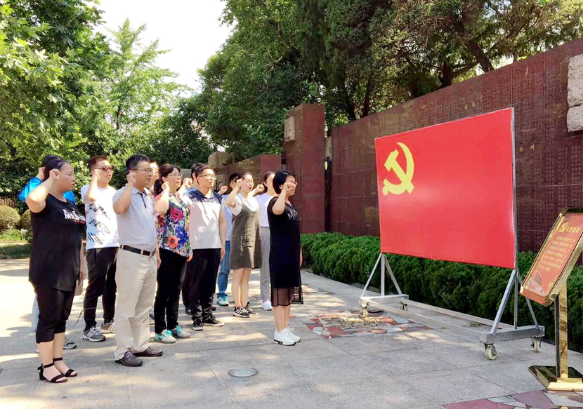 碧血书丹青,英灵铸丰碑。一行人来到鄂豫皖苏区首府烈士陵园,瞻仰了烈士纪念碑,并在英烈广场进行党员重温入党誓词。面对党旗,举起右手,庄严地向党组织宣誓。