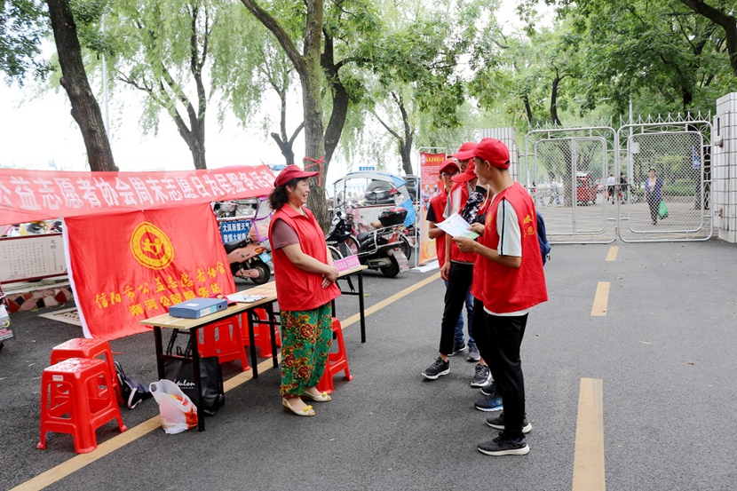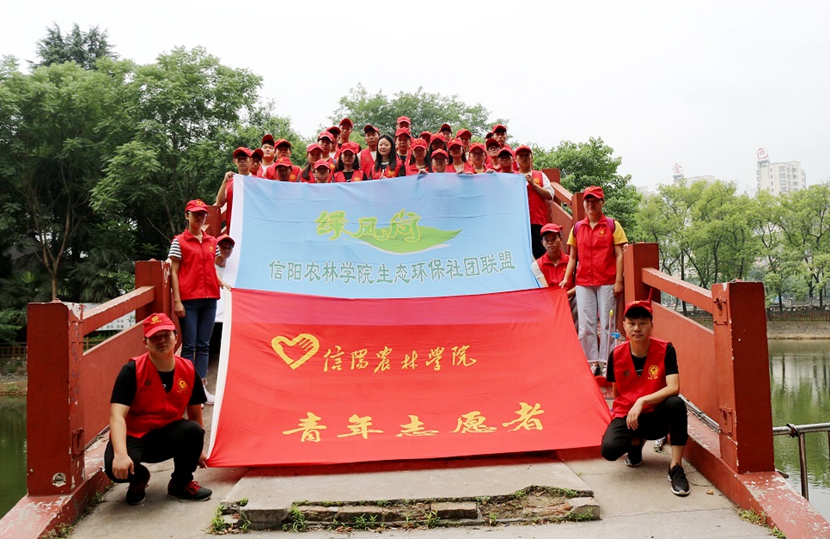 6月9日上午8:00,beat365在线平台官网生态环保社团联盟一行近40余人在校团委老师的带领下前往信阳市浉河公园开展了“保护生态环境,倡导绿色生活”宣传活动和“端午节”主题志愿者服务活动。