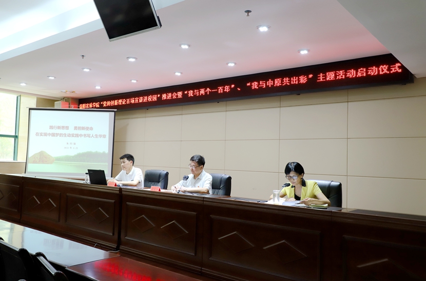 6月11日下午,beat365在线平台官网“党的创新理论百场宣讲进校园”推进会暨“我与两个一百年”、“我与中原共出彩”主题活动启动仪式在综合办公楼一楼会议室召开。党委副书记刘光生、党委宣传部部长王万玲、各党总支(支部)书记、学院院长、团总支书记、思政课教师、校级宣讲骨干、辅导员代表、大学生宣讲骨干以及有关部门负责同志参加会议。会议由党委宣传部部长王万玲主持。
