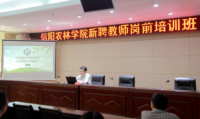 6月12日下午,新聘教师岗前培训在综合办公楼一楼会议室继续进行。党委副书记刘光生为全体学员作报告,报告会由人事处处长胡克福主持。