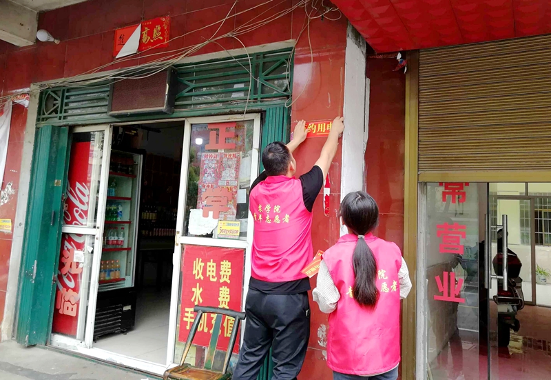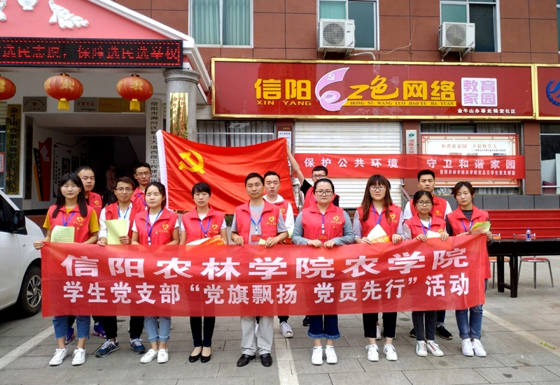5月26日,院组织员王付娟、学生党支部书记杨林及宣传委员刘书含带领12名学生党员干部到飨堂社区开展“保护公共环境 守卫和谐家园”环保宣传活动。
