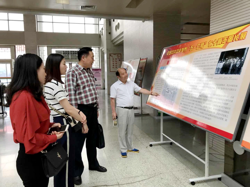 学习交流后,一行人员认真参观了河南省高校工委、河南省教育厅在河南大学举办的纪念中共中央发布“五一口号”70周年全省高校统一战线发展建设主题图片展。