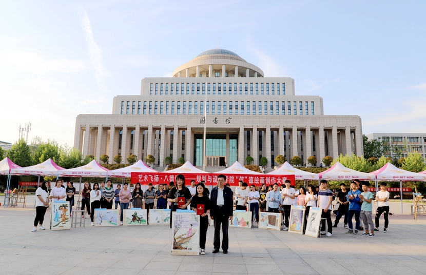4月27日下午,规划与设计学院“艺术飞扬·八德修身”——“信”德绘画创作大赛颁奖仪式在汝宁广场举行。党委副书记刘光生,副校长赵一鹏、王庆兵,党委宣传部、校团委、学生处、规划与设计学院主要负责人以及100多名师生参加活动。