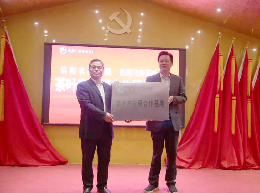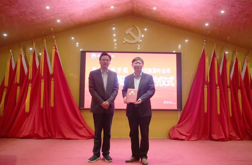 仪式上,茶学院院长郭桂义教授与文新茶叶公司常务副总经理曹理虹签订了茶叶产学研合作协议,副校长王庆兵向文新茶叶公司授予“beat365在线平台官网茶叶产学研合作基地”牌子,曹理虹向郭桂义教授颁发技术顾问聘书。(茶学院 陈义)