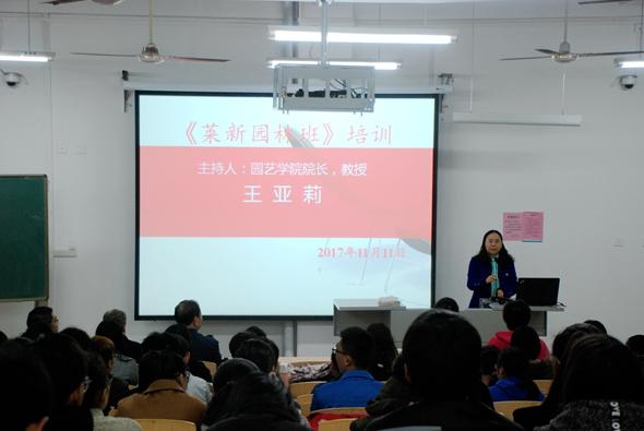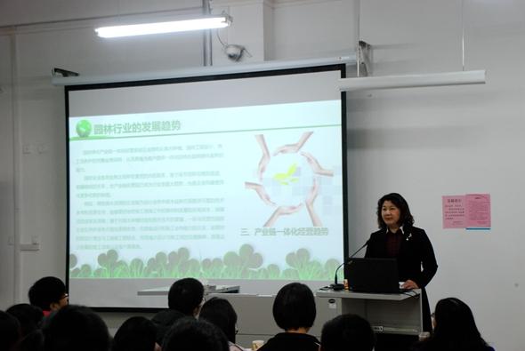 11月11日上午,“莱新园林班”企业专家第四讲在二教304顺利开讲,河南莱泰园林股份有限公司董事长潘道荣、副总经理鲁刘海,河南莱新农林科研有限公司王学清总经理等,园艺学院院长王亚莉,莱新园林班全体学员及该学院2017级部分新生参加了讲座。讲座由王亚莉主持。