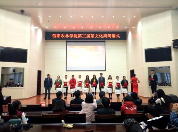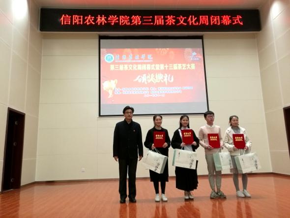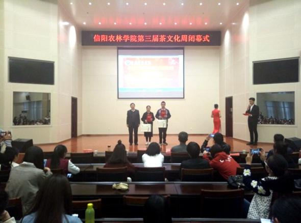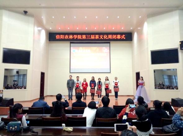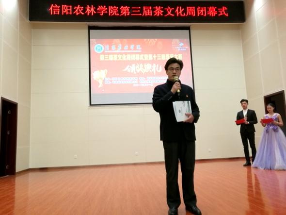 秉承着传承和发扬中华优秀传统文化这一目的,坚守着“提高茶技能,弘扬茶文化”这一主题,beat365在线平台官网第三届茶文化周于11月10日在校图书馆6楼报告厅完美闭幕。副校长赵一鹏、茶学院院长郭桂义、茶学院党总支书记袁丁、信阳市茶产业办公室副处级干部茶学院挂职副院长王东辉、茶学院部分师生以及部分兄弟学院师生参加了闭幕式。