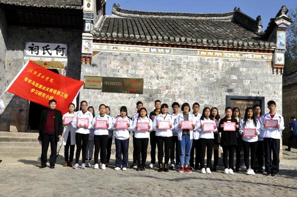 为了传承弘扬长征精神,加强理想信念教育,促进知行合一,增强大学生对思政课的获得感,在学校领导的大力支持下,思想政治理论课教学部联合校团委、学生处,于11月26日上午组织思政部教师、“十九大”征文获奖学生和“青马工程”学员,赴红二十五军长征出发地罗山何家冲开展“重走长征路”主题实践教学活动。