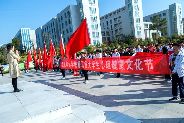 10月31日下午,心理健康教育与咨询中心联合各学院举办了第五届心理健康文化节“环校微笑行”活动。心理中心老师、各学院师生共计500余人参加了本次活动。心理中心主任简频捷为本次活动致辞。