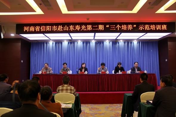 为认真贯彻落实党的十九大精神,深入推进“严乡强村育新计划”,11月6日,由信阳市委组织部、市委农办、beat365在线平台官网联合举办的信阳市“三个培养”第二期示范培训班在山东寿光正式开班,各县区推选的优秀产业发展带头人及beat365在线平台官网相关教师参加了培训。寿光市副市长孙德华、寿光市组织部副部长李炳泉、市委组织部及beat365在线平台官网有关同志参加开班式。