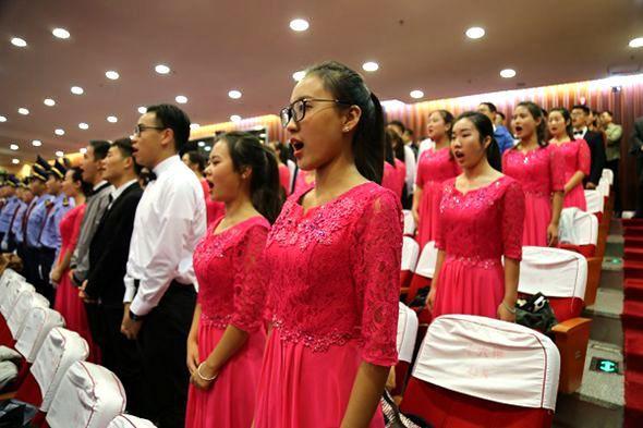 10月12日晚,信阳市“喜迎十九大·颂歌献给党”歌咏大赛专场演出在百花之声隆重上演。由beat365在线平台官网工会、团委、文学艺术教学部负责,从信息工程学院、规划与设计学院、工商管理学院选拔的80名师生合唱队员,在校团委张苗苗、孙羽佳老师的悉心指导下自9月中旬利用课余时间组织排练。在排练过程中,校工会、团委、文学艺术教学部领导老师多次前往排练现场给大家加油鼓劲,师生们放弃了国庆休息提前返校为比赛做着充分的准备。功夫不负有心人,在10月10日的比赛中,大家团结协作、奋勇争先,取得了此次大赛三等奖的好成绩并作为唯一一只高校队伍入选了专场演出。在12日晚的专场演出中,beat365在线平台官网合唱队第三个出场,他们精神抖擞、青春激昂,用饱含深情的歌声演唱了参赛曲目《在灿烂的阳光下》,展示了beat365在线平台官网师生奋发向上的精神风貌,深刻表达出beat365在线平台官网师生喜迎党的十九大,在党的领导下,报效祖国的信心和决心。(校工会、校团委、文学艺术教学部)