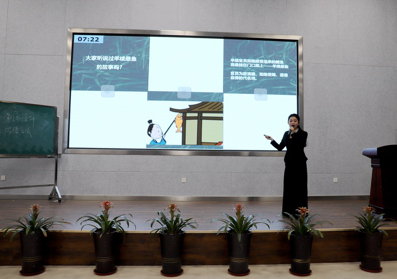 各党总支推荐的20名选手经过预赛选拔出10名优秀选手参加决赛。决赛中,参赛选手以“廉洁立德、诚信修身”为主题,结合自己的学科专业课程特色,精心设计教学内容,科学运用教学教法,既凸显专业知识,又巧妙融入廉洁和诚信教育要素,润物于无声,用精湛的教学技能生动展示了廉洁教育和专业知识讲授的统一性,知识传授和价值塑造的协同性。