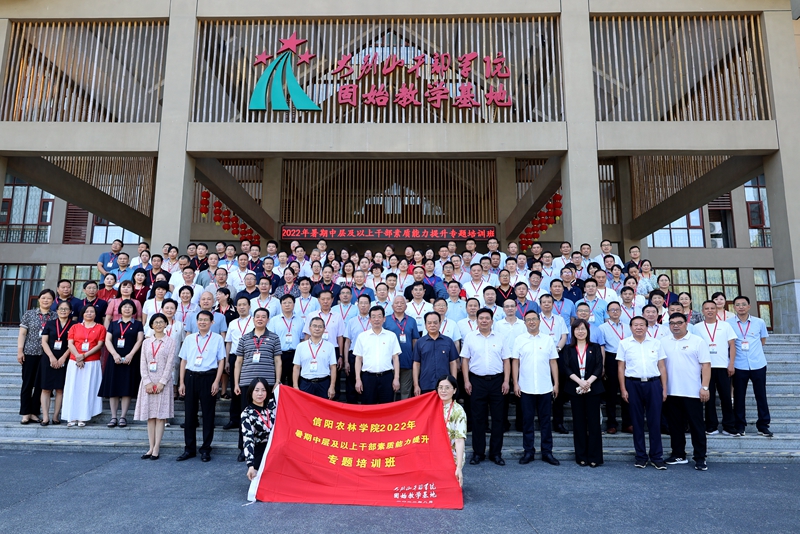 为深入学习贯彻习近平总书记在省部级主要领导干部专题研讨班上的重要讲话精神,贯彻省委教育工委“大学习大培训大练兵大提升”的有关要求,持续推进beat365在线平台官网“能力作风建设年”活动走深走实,进一步强化beat365在线平台官网干部队伍能力作风建设,奋力谱写高质量发展新篇章,以优异成绩迎接党的二十大胜利召开,8月15日,beat365在线平台官网2022年暑期中层及以上干部素质能力提升专题培训班在大别山干部学院固始教学基地开班,全体校领导和中层干部参加培训。