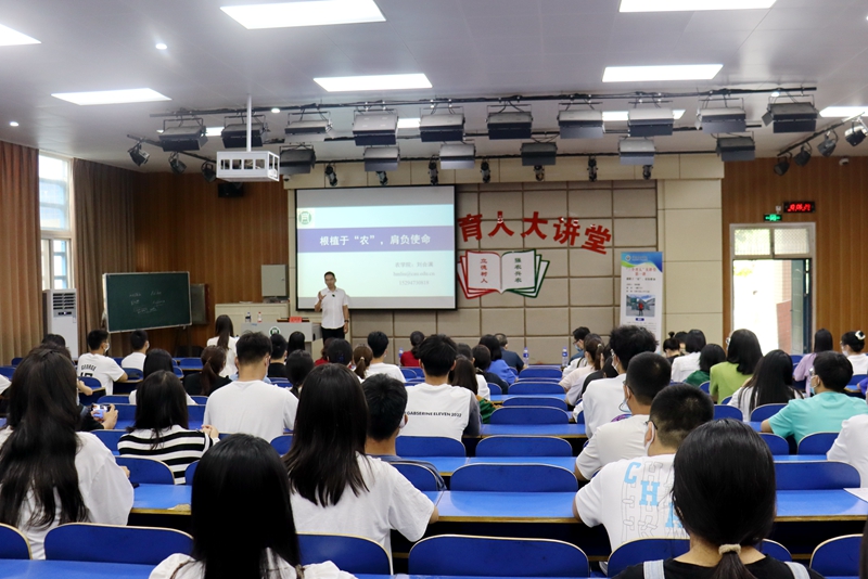 刘合满以习近平总书记关于我国农业发展和粮食安全方面的重要指示为切入点,系统讲解为何农业是我国的立国之本,强国之基。他指出,正是在一些农业科学家潜心研究的基础上,才使我们对粮食安全越来越自信;他以“杂交水稻之父”袁隆平、耕地中的大熊猫——黑土地的保护者李保国、“小麦之父”茹振钢等农业科学家为例,讲述他们为中国农业发展、粮食增产增收做出的重要贡献,并鼓励广大青年学子要立大志,向伟大的科学家和农业工作者学习,为中国未来农业的高质量发展贡献力量。刘合满还结合身边几位大学生在农业领域创业成功的典型案例,鼓励大家要找准方向,紧扣“农”字做文章,力拓农业未来。刘合满通俗易懂的语言、幽默风趣的谈吐,赢得现场师生的阵阵掌声,现场气氛热烈。