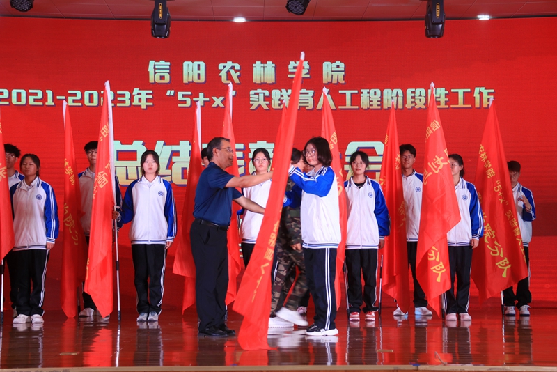 王庆兵为各学院“5+x”实践育人工程分队授旗并作了总结讲话。他指出,在全校上下扎实开展学习贯彻习近平新时代中国特色社会主义思想主题教育之际,举办“5+x”实践育人工程阶段性总结表彰大会是学校构建“三全育人”格局、完善实践育人体系的重要总结,对当前和今后学校开展实践育人工作有着良好的促进作用。全校师生要认真学习贯彻习近平总书记给中国农业大学科技小院学生的回信精神,学会“自找苦吃”,走进乡土中国深处,深刻理解什么是实事求是、怎么去联系群众。他从进一步促进工程与思想政治教育体系深度融合;进一步引导学生培育爱农情怀,练就兴农本领;进一步完善工程体系,形成品牌效应等三个方面对工程持续健康有效发展提出了具体要求。王庆兵强调,全校各级团学组织要提升政治站位,深切体会党和国家事业发展对高等教育的需要、对科学知识和优秀人才的需要的迫切感,以实践育人工程为载体,为中华民族伟大复兴贡献更大力量。广大青年学生要在实践中更加自觉的按照党指引的方向健康成长、践行“请党放心、强国有我”的青春誓言,争做有理想、敢担当、能吃苦、肯奋斗的新时代好青年。
