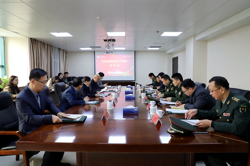 11月30日上午,信阳市委常委、信阳军分区司令员李选才一行到beat365在线平台官网开展征兵工作调研,信阳军分区、市征兵办公室、市政府督察室、平桥区人武部等单位领导陪同调研。校长曹健,党委委员、副校长黄立,相关职能部门负责人、教师代表、辅导员代表和退伍复学学生代表参加座谈。座谈会由黄立主持。