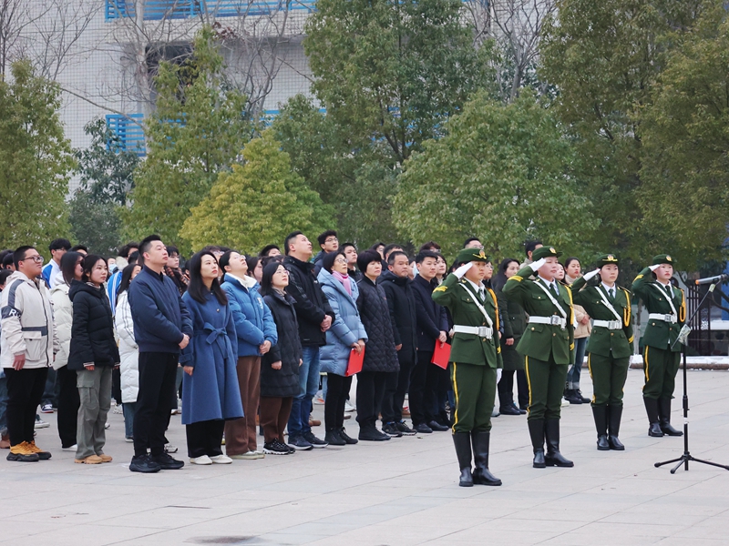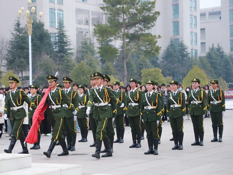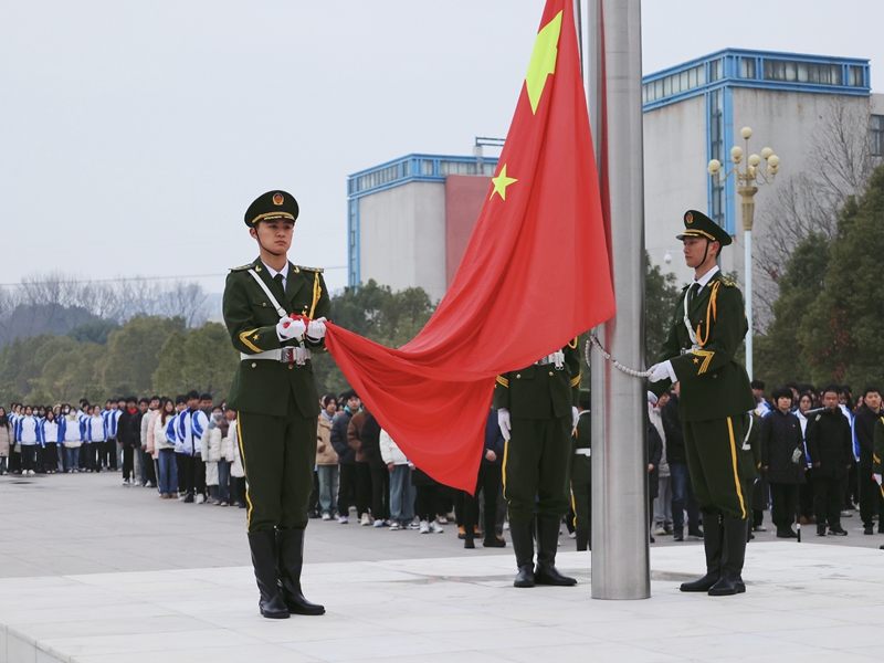 早晨七点整,仪式正式开始,校团委国旗护卫队的同学们姿态气宇轩昂,步伐铿锵有力,护送着鲜艳的五星红旗正步走向旗杆。在雄壮国歌声中,全体师生面向国旗肃立致礼,鲜艳的五星红旗徐徐上升,在晨曦中迎风飘扬。