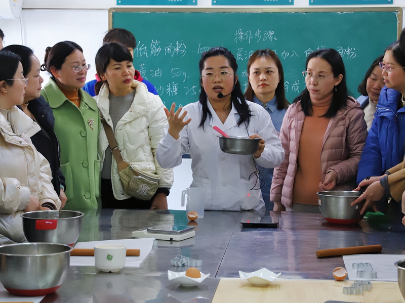 3月8日下午,由校工会主办、食品科学与工程学院承办的“巾帼同行·共享春甜”2024年“三八节”糕点DIY活动在食品科学与工程学院实验室举行。女教职工代表50余人参加该活动。信阳市五一劳动奖章获得者王宝刚老师带领大家进行糕点产品DIY;老师们还进行了信阳鱼丸、固始鹅块、养生药膳大别山养生汤品鉴活动。党委副书记王万玲,党委委员、副校长李益民、黄立到现场指导,并为女职工加油鼓劲。王万玲指出,全体女教师巾帼不让须眉,大家要在今后的工作中充分发挥出“半边天”的作用,做到爱校、爱家、爱学生,做新时代的新女性,做信农教师的楷模。