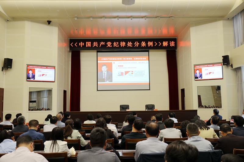 黄松以《学纪知纪明纪守纪,为推动学校事业高质量发展提供坚强纪律保障》为题作了动员讲话和专题党课。他指出,在全党开展党纪学习教育,是以习近平同志为核心的党中央作出的重大决策。加强纪律建设,是维护党的团结统一、确保全党步调一致向前进的根本保证,是践行党的根本宗旨、始终保持党同人民群众血肉联系的必然要求,是纯洁党的肌体、增强拒腐防变能力的锐利武器,是勇担党的历史使命、引领伟大社会革命的重要保障。就深入开展好党纪学习教育,黄松要求,要心中有党,旗帜鲜明讲政治,在对标对表中把牢正确方向。坚定党的理想信念,贯彻党的政策主张,遵守党的纪律规矩,旗帜鲜明讲政治,为广大师生树标杆、作表率;要心中有戒,高举戒尺强约束,在从严从实中深化纪律建设。把精力用在“学纪”上,把心思放在“知纪”上,把标尺放在“明纪”上,把言行放在“守纪”上,搞清楚纪律规矩是什么,弄明白能干什么、不能干什么,把遵规守纪刻印在心,让党纪成为“日用而不觉”的言行准则;要心中有责,持之以恒塑品行,在履职尽责中涵养新风正气。坚持“六项纪律”一起遵守,坚持学纪、知纪、明纪、守纪一并落实,坚持强党性、正党风、严党纪一体推进,坚持从严管理监督和鼓励担当作为一同发力,为推动学校事业高质量发展提供坚强纪律保障。