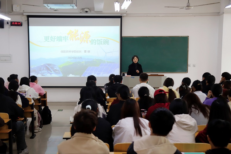 11月13日上午,校长曹健以“更好端牢能源的饭碗”为主题,为食品科学与工程学院学生上了一堂生动的思想政治理论课。