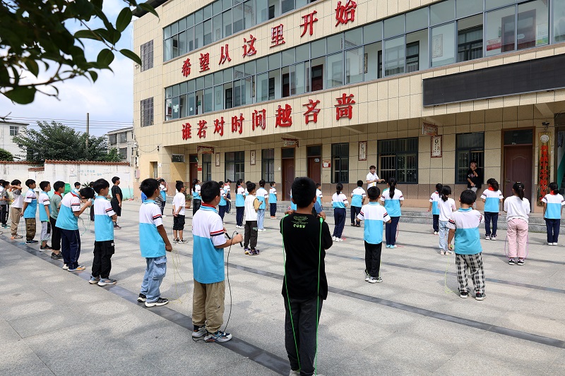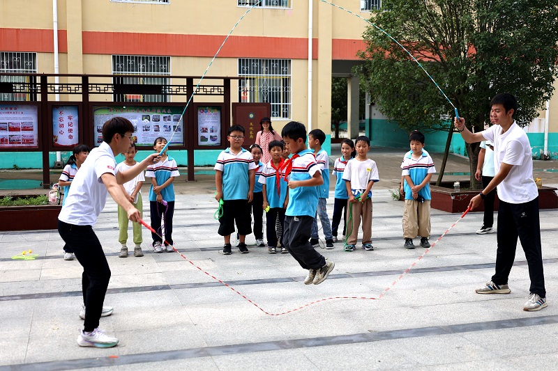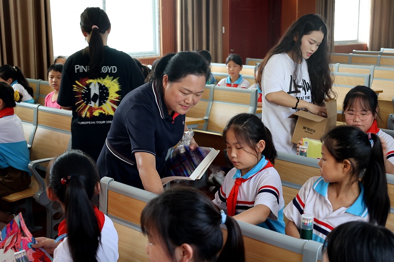 文艺支教服务团到达新里镇中心学校后,双方召开了座谈交流会。新里镇中心学校副校长岳小宁代表学校对服务团一行的到来表示热烈欢迎,并详细介绍了学校基本情况。党委宣传部副部长陈丽文介绍了本次活动的目的意义,了解了师生的热切期盼和需求,表示以后根据学校师生需求,提供精准服务。随后服务团对学校三四五年级学生进行跳绳、舞蹈、绘画课程培训,为学生们上了一堂丰富精彩的课程。最后,服务团一行为结对帮扶的小学赠送了篮球、排球、绘画本、绘画笔等文体和学习用品。