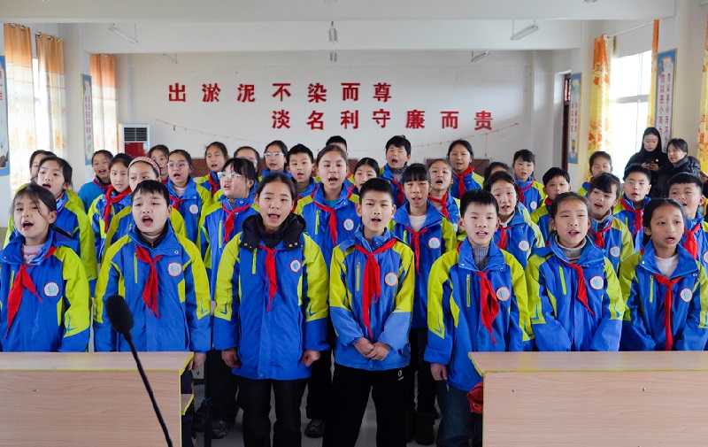 汇报演出在何鑫指挥下圆满完成,固始县黎集镇中心学校的学生们带来了《蝴蝶的梦》《祖国在我心窝》等精彩歌曲。