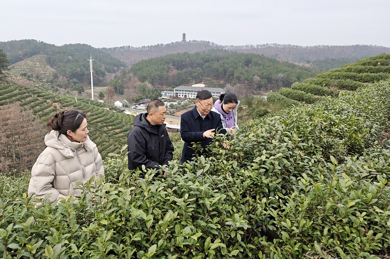 在光山县净居寺茶场,服务团调研了冬季茶园生长及旅游开展情况。对如何管理越冬茶园、利用冬季景观特色、开发季节性旅游产品等提出建议。