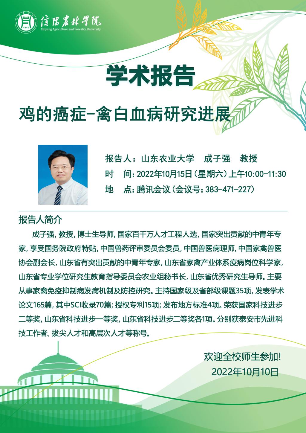 学术报告——鸡的癌症-禽白血病研究进展
