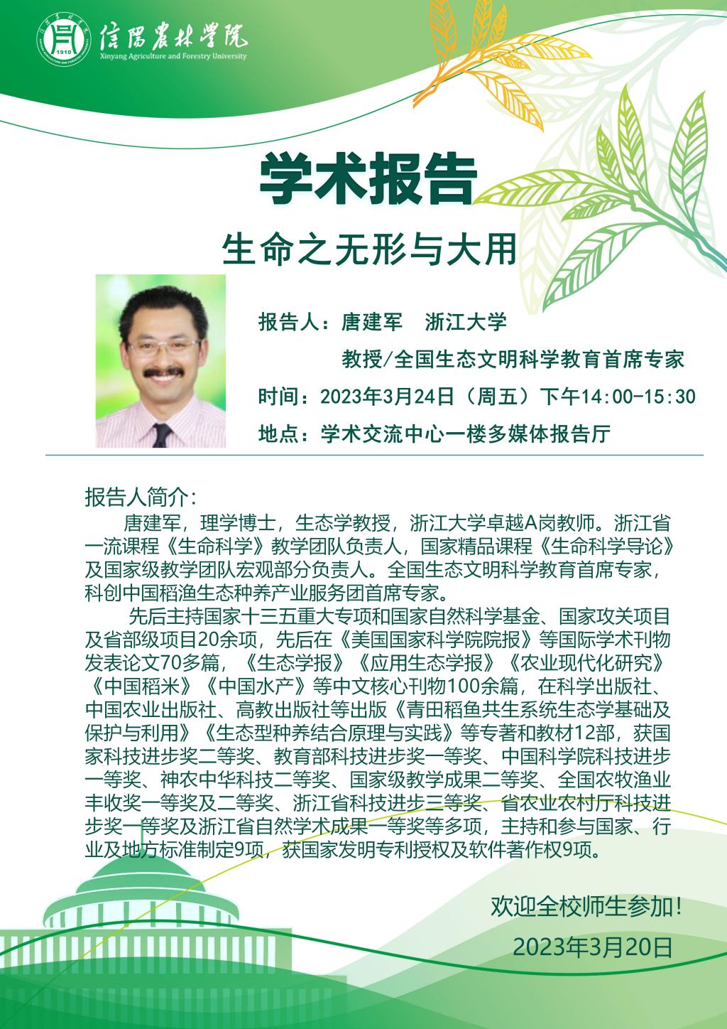 学术报告——生命之无形与大用