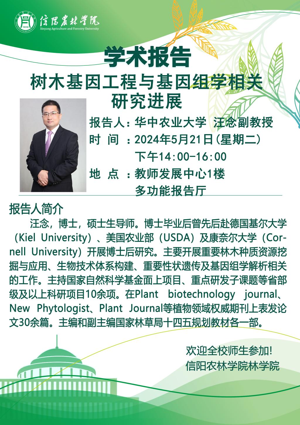 学术报告——树木基因工程与基因组学相关研究进展