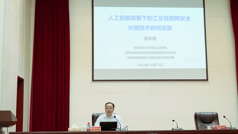 10月15日下午,河南科技大学信息工程学院院长张志勇教授应邀在图书馆六楼报告厅作了题为“人工智能背景下的工业互联网安全关键技术研究进展”的学术报告。信息化建设与管理中心全体教师和信息工程学院师生代表共计240余人参会。报告会由信息工程学院院长赵喜玲主持。