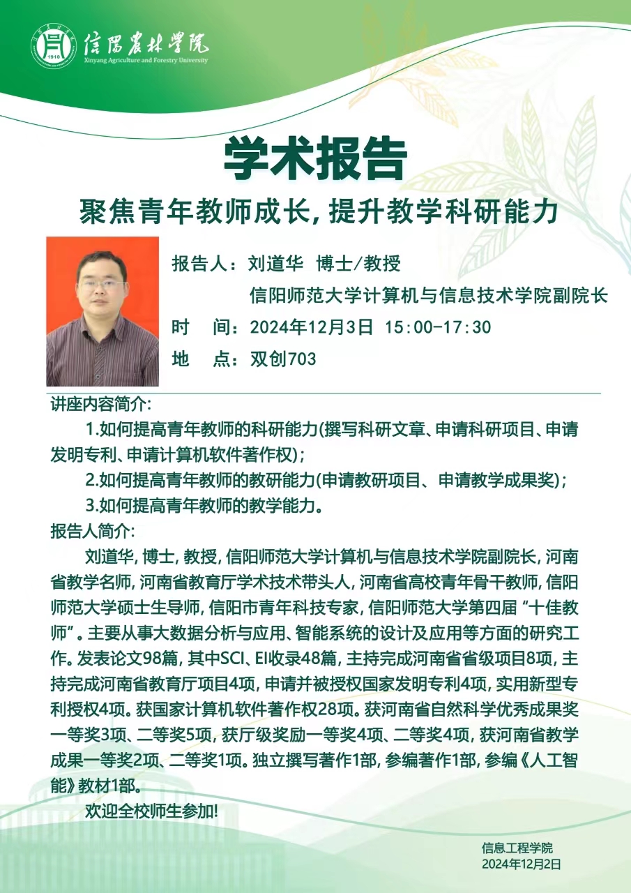 学术报告——聚焦青年教师成长,提升教学科研能力