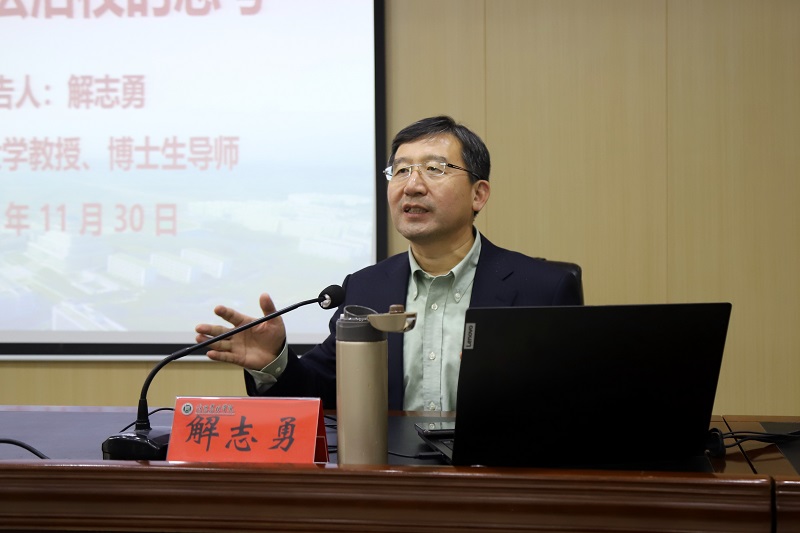11月30日下午,中国政法大学比较法学研究院院长、博士生导师解志勇教授应邀来校,作了题为《大学依法治校的思考》专题报告。报告会由党委委员、副校长张光辉主持,职能部门中层干部,各学院党总支书记、院长参加。