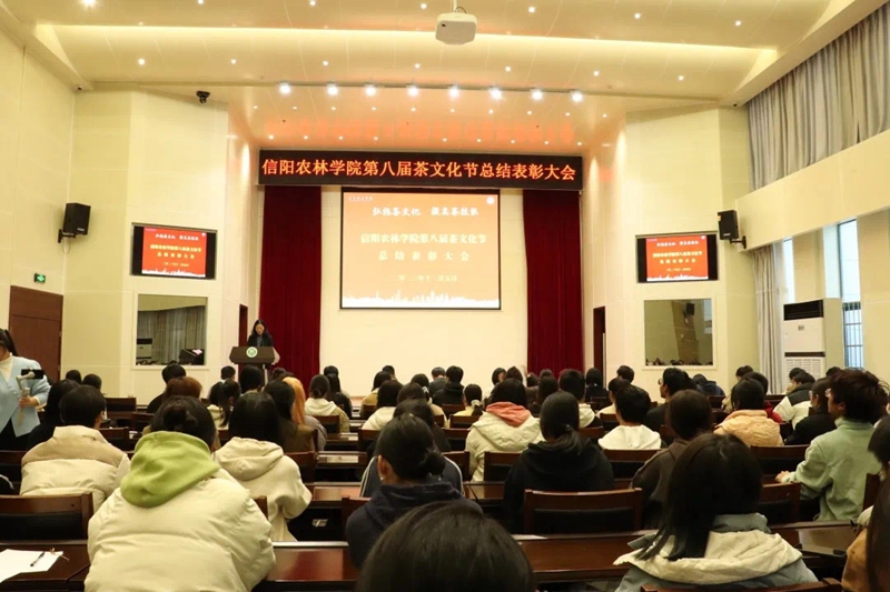 郭桂义在总结讲话中对在茶文化节中付出辛勤劳动的师生们表示感谢,对获奖的学生们表示祝贺。他表示,本届茶文化节是历届茶文化节中历时最长、场景展现最多、形式最为丰富的一次茶文化盛典。为期一个月的茶文化节,学院先后举行了茶文化节开幕式、无我茶会、《茶苑大讲堂》学术报告会及茶艺大赛、仿宋茗战大赛、茶文化知识竞赛、评茶技能大赛、学生炒茶技能大赛等8项文艺、科普和竞赛活动。在茶文化节开展期间,学院还向全校师生们展示了《茶叶综合利用》《茶树栽培育种学》《制茶学》《茶艺学》等课程的实验实践成果,精致茶点和新式茶饮、茶树特色品种和茶树叶脉画、学生炒制的茶叶产品、精美茶席、实验室珍藏的茶叶标本、茶艺和茶文化知识展板等也成为活动的亮点和特色,为本次茶文化节营造了浓厚的知识和文化氛围。他指出,通过比赛,同学们赛出了奋发向上的精气神,推进了学院“学、赛、创”三位一体的“理论实践结合,课内课外结合”的实践育人理念,以茶文化节为依托,学院在创新人才培养工作中取得了优异成绩。学院将继续挖掘专业特色,坚持“以赛促学、以赛促教、以赛促创、以赛促研”的育人思路,扎实培养学生的茶学技能,增强学生的文化自信,致力于培养更多的茶学优秀人才,让信农的茶香飘得更远。