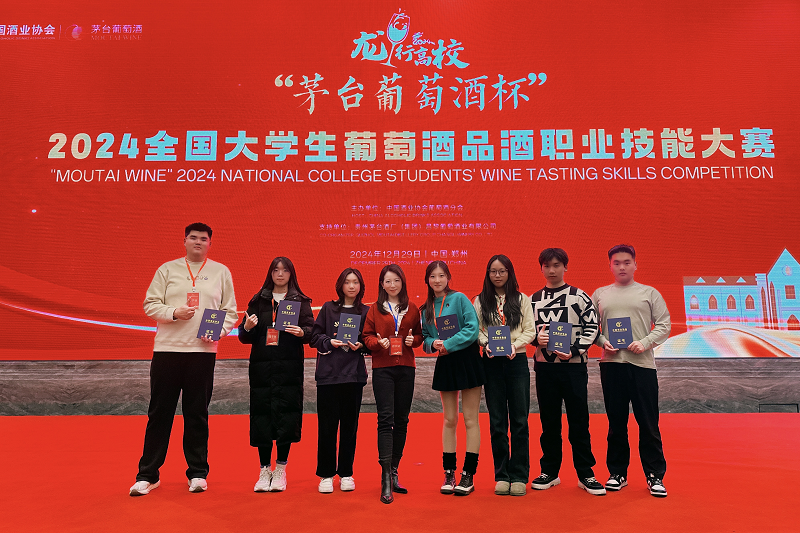 12月29日,由中国酒业协会葡萄酒分会主办的“茅台葡萄酒杯”2024全国大学生葡萄酒品酒技能大赛在郑州举办。beat365在线平台官网食品科学与工程学院教师商天奕带队参加,与来自中国农业大学、西北农林科技大学、上海交通大学、华中农业大学、石河子大学、宁夏大学、甘肃农业大学、大连工业大学、沈阳药科大学、北京农学院等近30所高校的105名选手同场竞技。