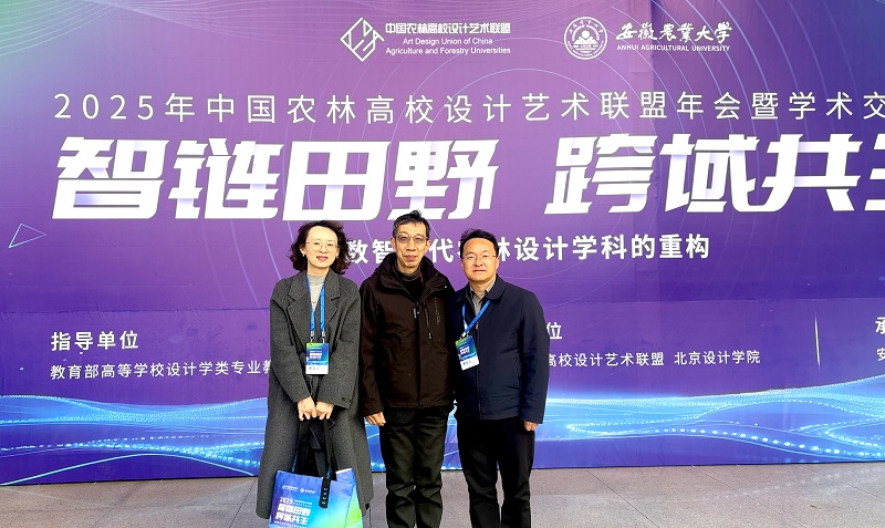 12月13至14日,由教育部高等学校设计学类专业教学指导委员会指导,中国农林高校设计艺术联盟和北京设计学会主办的2025年中国农林高校设计艺术联盟年会暨学术交流会在安徽农业大学举办。风景园林艺术学院副院长张志锋、科研秘书刘昂受邀参加本次年会。