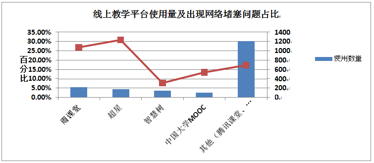 图5 线上平台使用量及出现网络堵塞情况