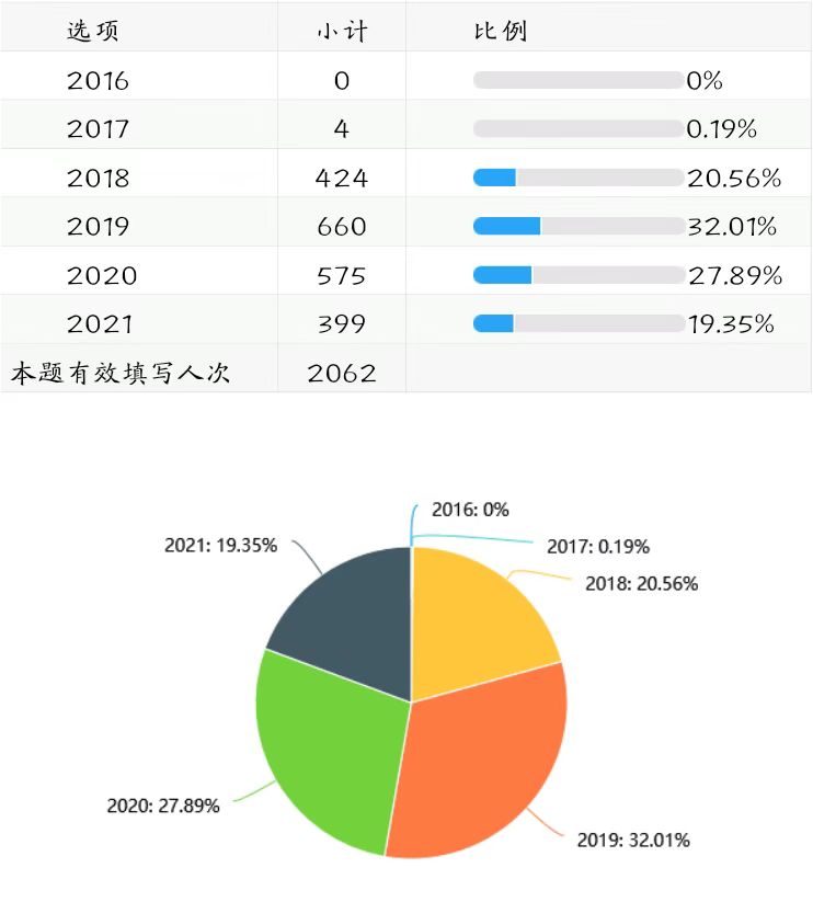 2019级学生的课程占比为32.01%,2020级学生的课程占比为27.89%,2018级学生的课程占比为20.56%,2021级学生的课程占比为19.35%。