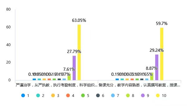 该维度平均分为9.48(满分10分计),达到优秀标准,老师的教学态度和课前准备得到评价者的认同,满分评价的比例很高。