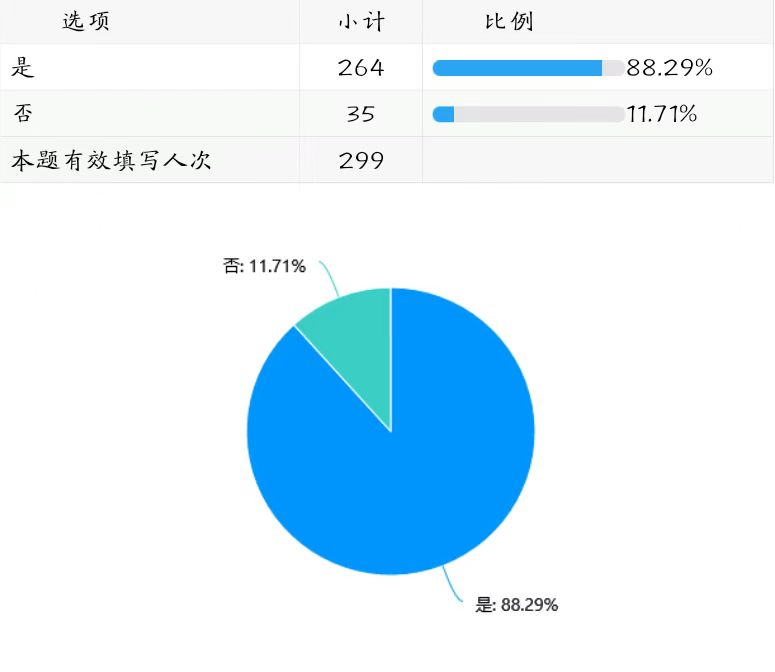 绝大多数受访者(88.29%)的反馈表明,各学院每学期均召开了学生座谈会。(详见下图表)