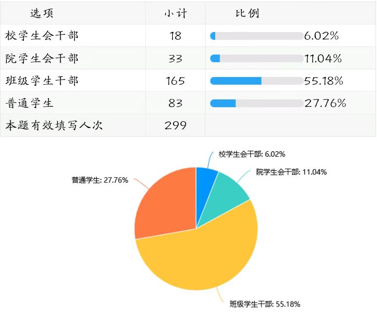 2022年5月,监评中心对学校学生教学信息员的基本情况进行了调研,调研使用问卷星平台,设计问卷题目12题,分为基本情况、信息员工作内容、主观评价等三个维度,问卷共收到299份有效回复,现将本次调研的结果分析如下。