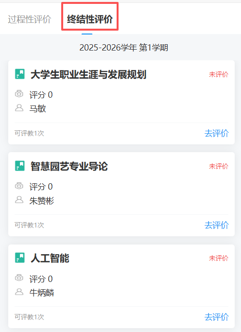 2025-2026学年第学期学生评教工作于20251216-12月28日进行,请各学院安排学生及时评教,评教需注意以下几点: