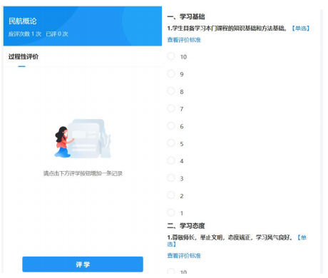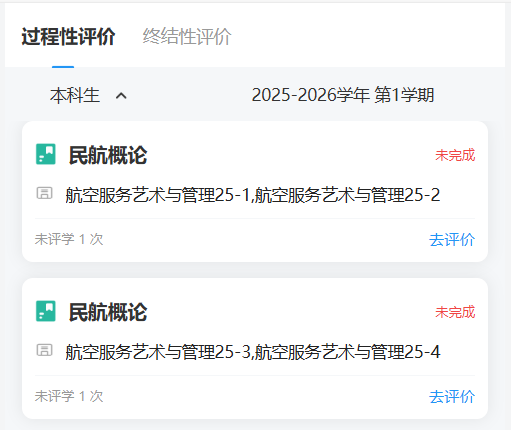 4.选择过程性评价,点击“本科生/专科生”,选择相应课程点击“去评价”。