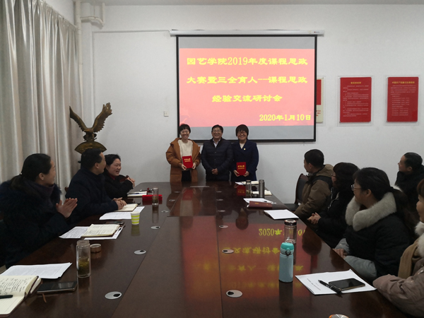 1月10日上午,园艺学院在2A318会议室举办2019年课程思政大赛暨三全育人课程思政经验交流研讨会,党委学生工作部副部长孙莉琴,园艺学院领导班子成员,各教研室、实验室主任和部分专业教师参加了此次交流研讨活动。交流研讨会由园艺学院党总支书记张祖成主持。