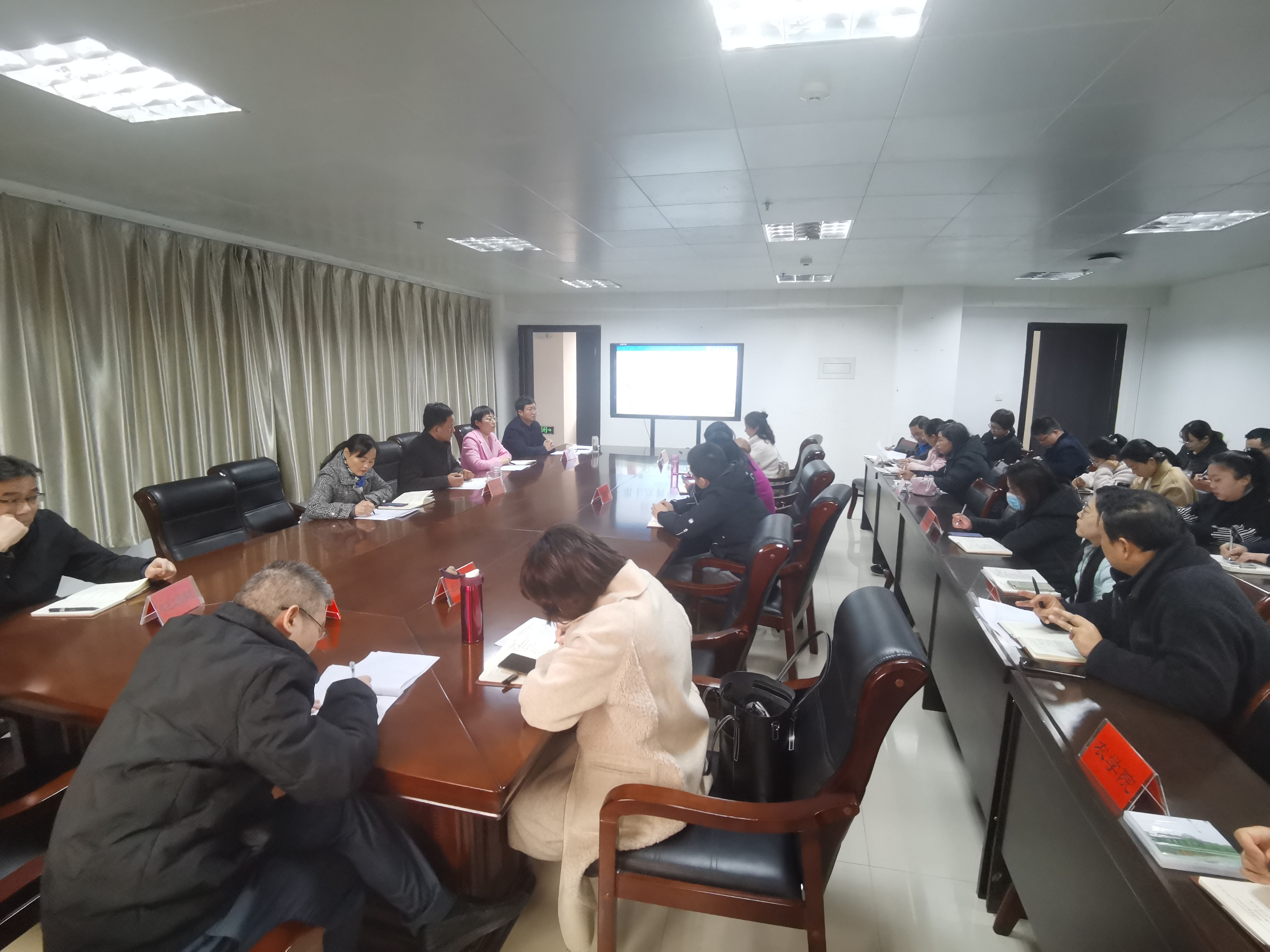 2020年11月30日下午,在行政楼第二会议室学校召开2020年秋冬学期第七次教学工作例会。各教学单位副院长(副主任)、教学秘书、教务处、监评中心全体人员参加会议。会议由监评中心副主任孙万慧主持。
