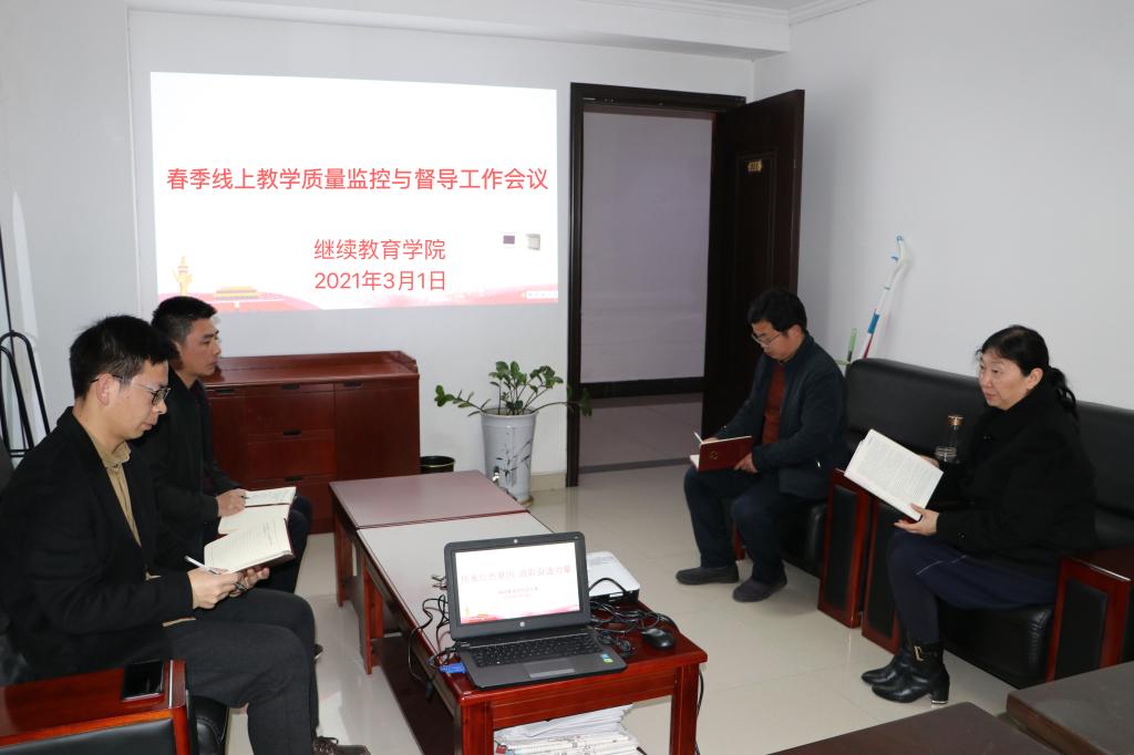 3月1日上午,继续教育学院召开2020-2021学年春季线上教学(疫情期间)质量监控与督导视频工作会议。会议由继续教育学院院长黄艳霞主持,全体教职工参加。