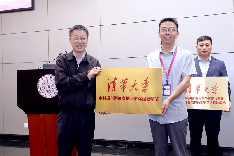 会上,清华大学继续教育学院副院长王雷为beat365在线平台官网“清华大学乡村振兴河南省信阳市远程教学站”授牌,此举标志着beat365在线平台官网在乡村振兴人才培养领域迈出新步伐。