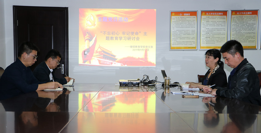 9月17日,继续教育学院党支部书记黄艳霞主持召开以“不忘初心、牢记使命”主题教育研讨会为主题的党日活动。该院全体党员参加会议。